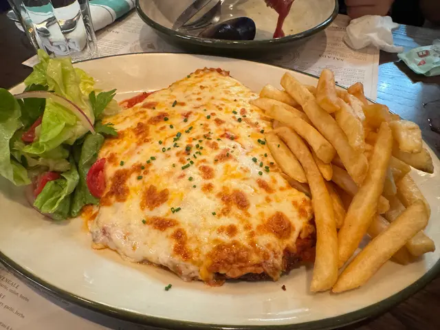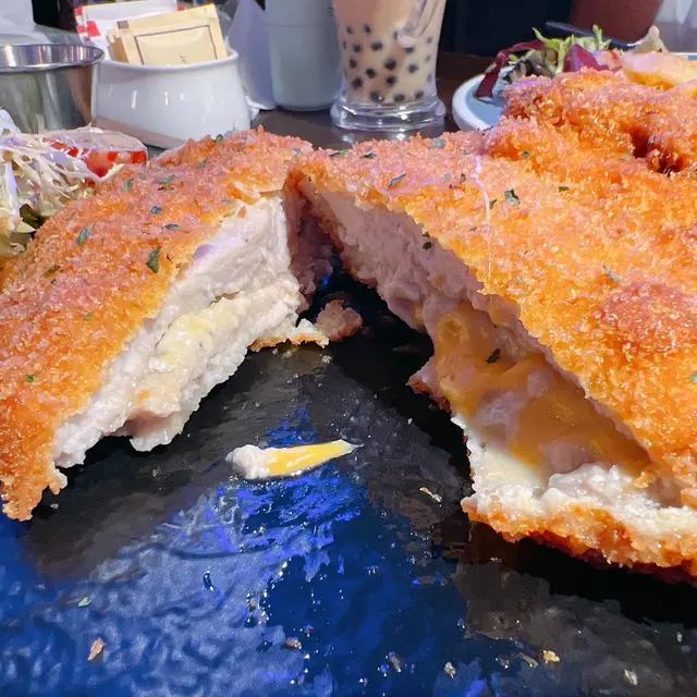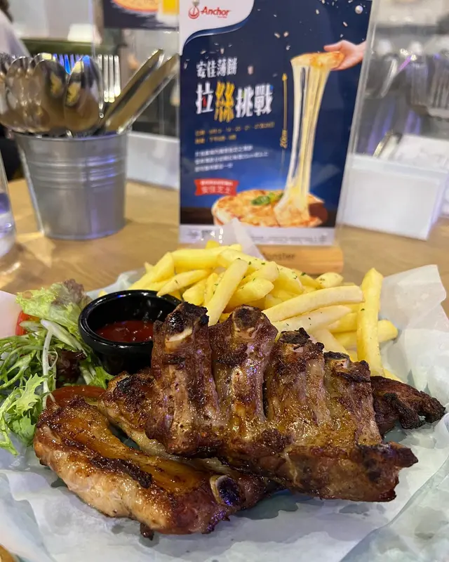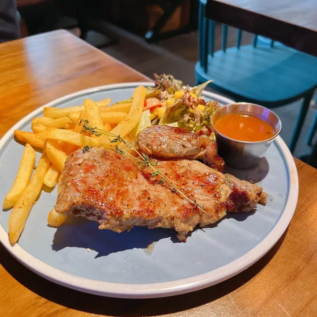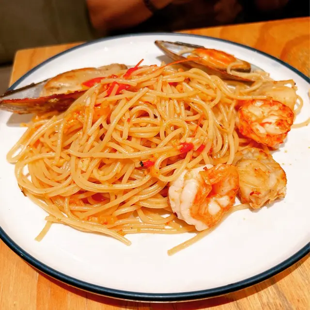 之後上牛扒,係合格之上的水準!不過叫5成好似黎咗7成最超預期的係配菜薯條,薯味好重,最大鑊係佢脆卜卜,真係停唔到口,不停食心真係好熱氣。接住來的係海鮮意大利麵,呢啲真係有驚喜,個忌廉汁又滑又濃,帶子好新鮮,雖然煎過,但依然juicy,好滿足呢個!朋友話意粉個青口同散叫個青口味道係唔同嘅,所以唔使太擔心重複。再落去就食咗巴馬臣芝士雞胸,冇諗過碟雞胸咁大份