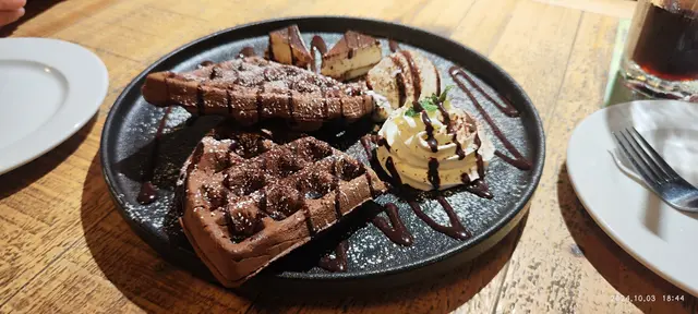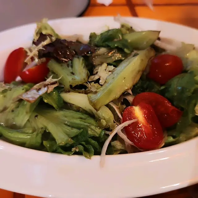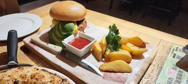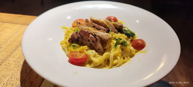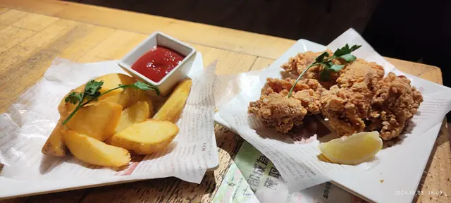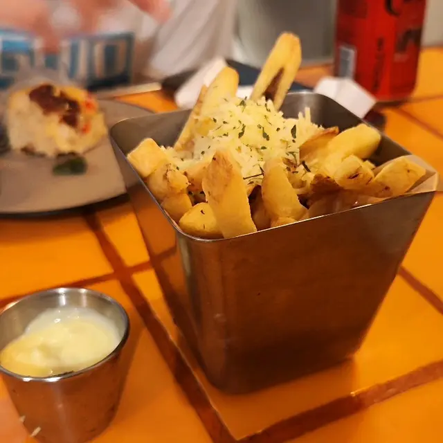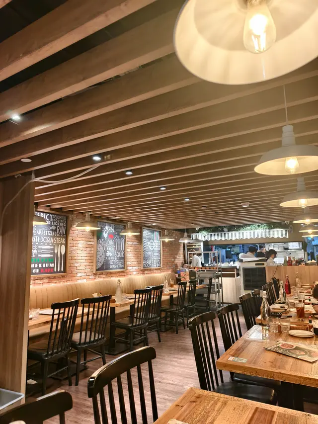 是日二人飯局相約太子吃西餐!晚上6點半左右,人未算很多,選了門口卡座位置,餐廳裝飾挺用心特別的(門口那只開關門手,非常得意),氣氛亦很不錯,很適合三五好友輕鬆小聚!天氣太熱,坐下就點了一杯青蘋果Mojitos,冰冰涼涼,酸甜帶點薄荷葉的清新,很解渴!餐廳是掃碼自助下單的,挺方便,點了:綠色小沙律 - 生菜,苦菊,小蕃茄淋上一點胡麻汁,蔬菜新鮮而且份量不少,28蚊非常抵食!豬仔骨配酸黃瓜 - 豬仔骨甜甜的,肉腍多汁而且帶點燒烤香味,很好吃! 伴菜的酸黃瓜配搭非常好,餐前開胃,吃肉解膩!水牛芝士番茄羅勒闊條麵 - 闊條麵有咬口,而且掛汁,芝士+番茄的配搭不會出錯,芝士+碳水愛好者必選!黑松露和帕瑪森芝士炸薯條 - 炸薯條用粗身薯條,熱辣辣上枱,洒上帕瑪森芝士碎,黑松露醬另上,芝士加上黑松露醬的咸香,味道剛剛好。經典卡邦尼披薩 - 披薩是長方形的切成4份,非常喜歡餅底有點脆香,卡邦尼醬亦給得很足很豐富,醬汁Creamy餅底香脆,非常好吃。提拉米蘇 - 特意後上,作為餐後小甜點,餅底濕潤,咖啡味很出,如果Mascarpone再多一點的話層次就會更豐富。…查看更多