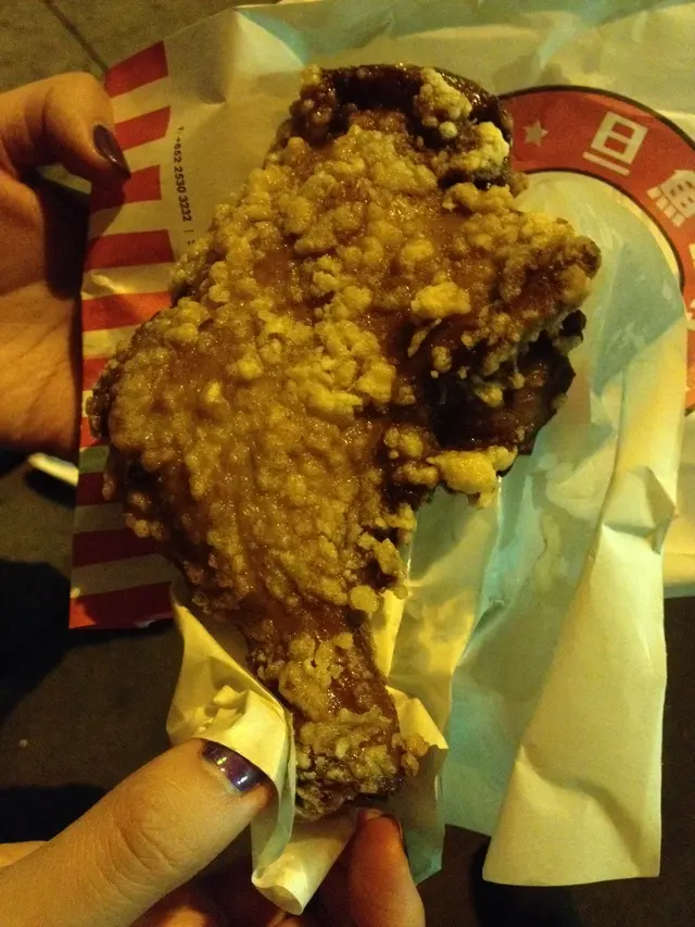 萬聖節落左LKF玩玩到4am臨搭的士離開中環前覺得好肚餓....想食熱野但係又唔想坐翠華...7-11 d小食又閂晒...本來諗住算...咁岩見到地下有張呢間野既handbill 所以拖住疲憊既身軀...走入和安里醫下肚(當時心諗: 咁搞笑 在LKF賣魚蛋???)豚王舊址, 都幾易搵個門口d燈都幾光..個裝修唔錯, 幾搶眼又幾多客喎...不過都好快手...都係等左一陣...拎到就即刻學其他客咁(好無儀態地) 坐在地下食-.-hahaha 好攰嘛戈陣我左諗諗右諗諗熱情既店員姐姐推介我食 [啖啖肉大雞脾] ($22) (點解凌晨返工都可以咁有精神 咁好笑容...佩服偑服...)佢話好多客都食完呢個 返黎再食拎上手, 又真係幾大舊 好抵食同埋個皮甜甜地 (蜜糖味?) 又脆脆地d肉又夠嫩 果然無介紹錯 又無改錯名hahahaha (thumb up)食完飽飽地 好滿足~~~ 價錢黎講 在中區 在夜深 合理喇(心裡OS: 如果以前讀U在campus有咁大舊雞脾賣, 12:30-1:00呢半個鐘lunch break就唔駛急急食完starbucks沙律/sausage roll 無幾耐 又肚餓-.-)如果肚餓又唔想食白飯/粉面 都可以食佢~…查看更多
