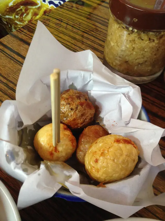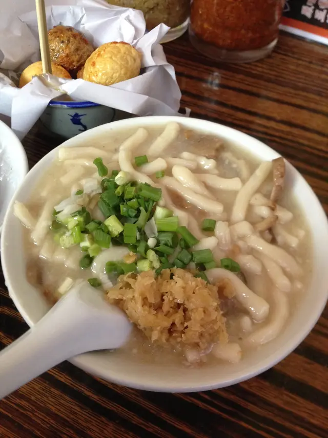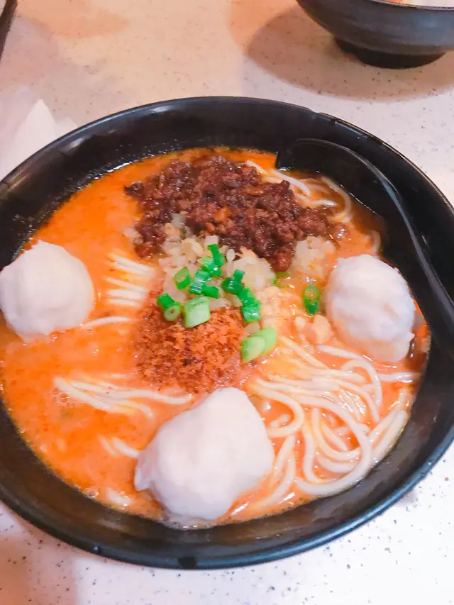 原本我都諗住係普普通通一個台灣野咁 , 見d餐具同埋環景都唔算係特別都無抱特別期望 , 因為遲收工關係 , 兩位小姐就先叫野食 , 一樣都係叫左花枝丸擔擔麵 , 再加叫左一客鹽酥雞3個一齊食.去到見到佢地碗野 , 又香又濃 , 我都跟佢地咁叫左花枝丸擔擔麵 .真係估唔到 , 個湯係十分重口味!! 完全岩哂我口味 , 本來我係好鍾意重口味的!! 又濃又"傑傑"地的湯底 , 花生 , 蒜 , 肉碎 加埋一齊好好食佢有得俾你唔同ga辣度 , 我都係最原本的小辣 , 好好味!!麵就唔算特別 , 普普通通都OK!!另外就係個一客鹽酥雞 (HK$58) , 其實以一般人咁諗基本上呢D小食都係又貴又小分量又普通估唔到, 呢個可能伙我食過最大分量的鹽酥雞小食朋友仲笑住話, 呢個分量直頭係一個小菜咁, 差個白飯就夠食~唔會太油,雞肉軟軟地, 有咬口 ,推介!!可能佢地2個女仔食得唔多,我遲到但都仲有好多舊可以食!!