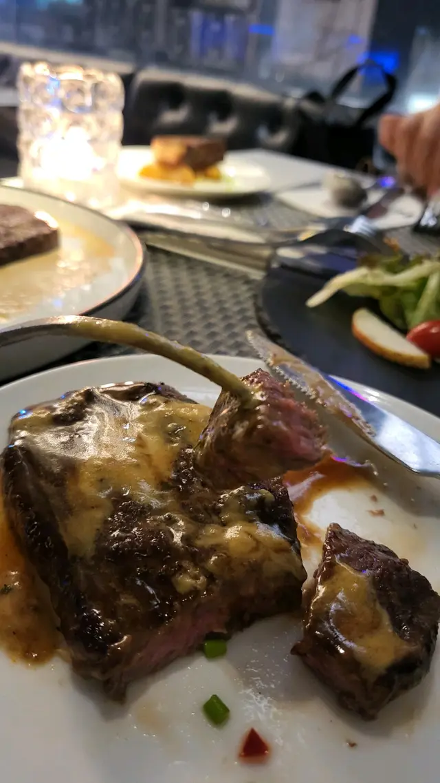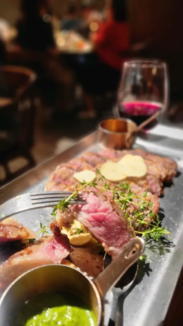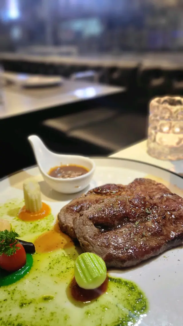 這一餐絕對能夠滿足喜愛牛肉的食客。。。呵呵,就是我🤗地點鄰近觀塘地鐵站🚅,容易找, 非常省時又方便👍慢煮牛肩胛肉🐂今次品嚐了令人垂涎的慢煮牛肩胛肉,這種慢煮烹調方式,保留了牛肉的嫩度🐮與及讓肉質更加柔軟,美味可口,而且營養價值也得以保留😻美國1855安格斯肉眼🐂要求煮五成熟,時間掌控很好,得以保持肉質柔嫩,咬口多汁而無草腥味,並且富含香醇的牛肉風味,是美國牛肉所獨有,也最標榜的特質😋😍溶岩梳乎厘班戟🥞除了主菜以外,我們還品嚐了溶岩梳乎厘班戟,不得不說這是一種令人難以抗拒的甜點😍 俗語有謂: 女性就是有2個胃👩🌾 呵呵😜絕對同意呢🙋♀️班戟內部散發濃郁的蛋香, 質感非常細膩 😋 再配上綿密的奶油,讓我的味蕾完全沉醉其中😝這樣的組合讓整個用餐體驗更加豐富多樣💯紅白酒 free flow🍷🍷以$138 這個價錢能夠品嚐到紅酒或白酒, 任喝100分鐘👍 我覺得是非常超值的😃 今次我主力品嚐紅酒🍷 入口香醇 😚丹寧滑順, 且滿有果香, 並非一般般的質素,而且服務員添加酒的速度實在令我滿意,必須加分👍👍👍😄工作人員非常友善且專業,時刻關注顧客的需求🤵♀️🤵♂️衷心希望他們繼續保持這個專業態度💞 我必會再來的😉…查看更多