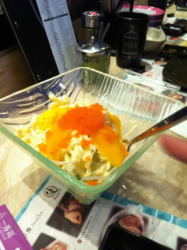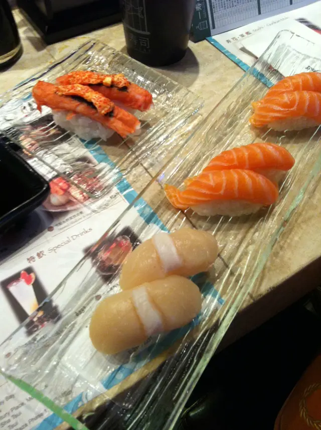 厚厚的menu 第一版係介紹每款ge 價錢叫左不少野食, 分別有三文魚, 及帆立貝壽司, 兩者ge 味道都新鮮, 而且肉厚, 而相最上面果份芝士蟹柳壽司( $25 ) 係每次幫襯出示會員卡都會送ge , 年費$50, 每次幫襯除左會送一客壽司, 亦會以正價95折, 一年, 其實幫襯兩次 都賺返:) 味道 亦不錯, 淡淡ge芝士味唔會搶左蟹柳ge 鮮味, 三文魚芒果花之戀, 清甜芒果 , 配上三文魚, 係一個唔錯ge 創作, 芒果沙律, 沙律汁比較多, 所以會比較膩 , 好彩當中ge 青瓜同芒果清甜, 中和返, 軟殼蟹天婦羅, 炸得唔錯, 粉唔會太厚, 亦唔會好油, 不過平常ge 日式料理店, 通常個天婦羅汁係配蘿蔔蓉, 但呢度用上左一款紅色ge 蓉, 唔知咩黎, 點左, 味道一般, 有少少酸味 炸蠔壽司, 亦炸得唔錯, 而且蠔冇腥味, 不過好似唔係好夾個壽司飯, 汁煎玉子, 蛋味重, 不過食唔出佢個醬汁有咩味道火焰黑蜘蛛卷, 其實係青瓜, 軟殼蟹卷, 面頭有少少黑芝麻,  冇咩特別Overall, 呢度ge 壽司飯, 搓得唔錯, 點上豉油, 亦唔會散開, 又唔會太硬, 食落口ge 口感軟熟, 不過呢度ge 服務一般, 一開始叫服務員換左會員小食時, 佢好似唔知發生緊咩事咁, 另一個服務員收野時, 唔出聲, 就expect 個客人遞隻店俾佢, 另外waiter 拎野唔小心整潟左汁落我度, 應承左俾張濕紙巾, 但之後冇左件事 ~ …查看更多