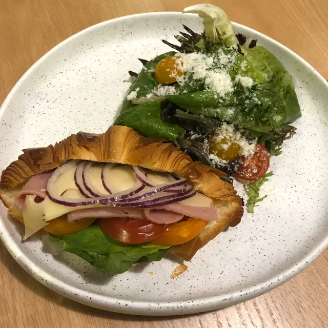同朋友慕名而來,不意外見到門口排曬長龍,個個都係等緊新鮮出爐嘅牛角包😍😍我本來就諗住坐低慢慢嘆杯咖啡食個bell,於是我哋喺店員引導下 入咗cafe坐。原來 出爐後嘅牛角包會預留部分供應俾堂食嘅顧客,所以係cafe度落order就唔洗等,售價一樣但結帳時會加一服務費。離遠已經feel到佢嘅溫度,用刀切開時亦feel到佢嘅鬆軟,真係外脆內軟🤩🤩配埋杯咖啡都好驚喜,係我鍾意嘅香濃cappuccino👍🏾👍🏾味道比較偏苦,又苦得啱啱好,唔鍾意苦味嘅朋友或者可以試下latte最後介紹下朋友order嘅sandwich,配咗salad可能比較飽肚,黃色嘅番茄好!甜!但牛角包嚟講original係最正!!😋😋…查看更多