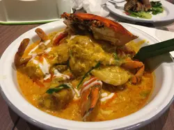 椰汁糯米飯配黑糯米雪糕、燒豬仔骨、咖哩炒蟹