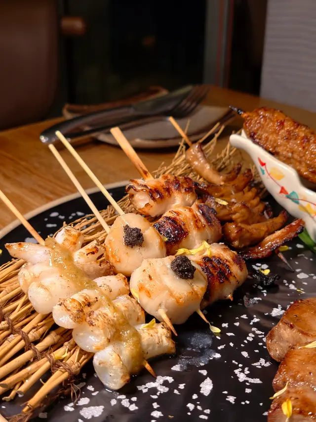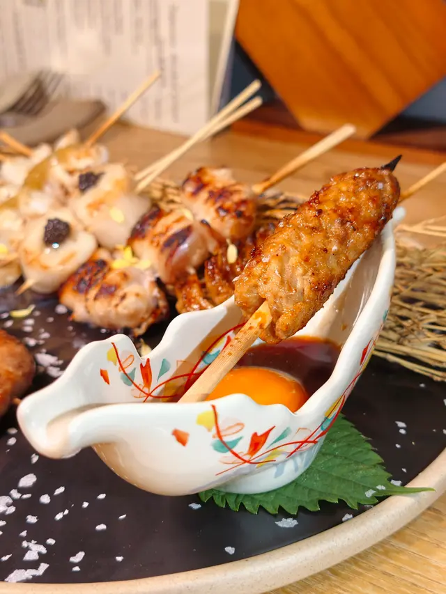 在銅鑼灣一間樓上居酒屋,主打精緻的日式串燒,座位旁亦見到具人氣的積分禮品展示,秋冬日之感謝祭正在進行,消費可換取積分,今期主題有Labubu及Crybaby系列換領!從餐前小食到主菜,每一道都蘊含著廚師的細膩心思。備長餅外層酥脆,餅乾之下分別包裹著鯪鯉魚肝、黃瓜漬,另一件則有三文魚籽、海膽與吞拿魚蓉,味道層次分明,適合打卡。🍡多款串燒🔸️牛舌厚切入口爽脆,汁液豐富🔸️荔枝豬肉卷外層微焦,豬肉香氣與清甜荔枝完美融合🔸️豚之大腸焦香撲鼻,口感Q彈🔸️黑松露帶子,黑松露帶子有松露獨特的香味🔸️柚子芥末墨魚鬚酸甜滋味層層遞進🔸️自家製免治雞肉棒(配日本蛋)外脆內彈,加入雞蛋醬汁更顯滑嫩,軟骨口感亦是亮點之一🔸️沙甸魚魚皮焦脆,魚肉結實,配以香蔥及明太子,味道辛辣🔸️豆腐外乾內滑🔸️美國頂級安格斯牛小排鮮嫩多汁🔸️鹽燒雞翼外層金黃🔸️雞腎爽口,青椒仔味道清甜,還有蒜香脆肉瓜散發焦香,果肉多汁。🍝明太子忌廉烏冬麵條掛滿醬汁,味道濃郁🎈備長🎈軒尼詩道525號澳門逸園中心26樓…查看更多