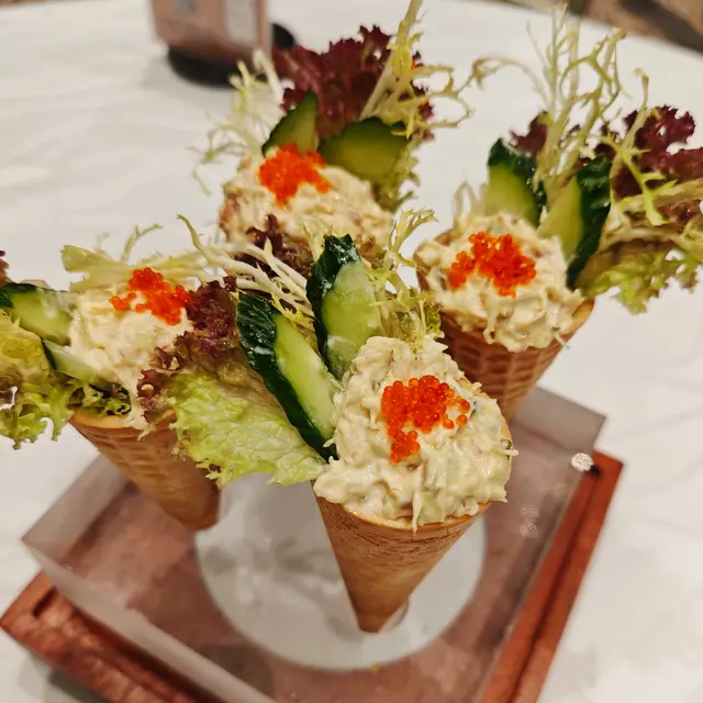 今日與家人一同來到海韻軒天澄閣,體驗高級粵菜!環境寬敞、樓底高,優雅的裝修讓整個用餐過程充滿儀式感!🌟蟹肉酸青瓜他他🦀🥒每台都會點嘅前菜。鬆化微甜的威化筒裡裝著新鮮的蟹肉沙律,搭配清爽的沙律菜,味道調得恰到好處。上碟仲有打燈裝置,非常打卡-able📸十三香料蔥爆牛肉🥩🧄份量驚人,十足的鑊氣,牛肉切得薄薄的,調味非常入味,每片都掛滿了汁液,非常好送飯!還搭配了香煎芝麻包,完美的吃法,美味又過癮!👍羅漢野菌素福袋🍄🎁每盤裡有八個小福袋特別可愛,豆皮包著新鮮的羅漢野菌,頂部用菜絲綁住,手工菜。咬下去時香菌的味道散發,口感豐富,讓人印象深刻!紅燒妙齡鴿🕊️外皮脆香,肉質嫩滑,炸得剛剛好,口感一流最後,仲有紫米露糖水,甜而不膩,好香紫米味,記得要留肚試埋!值得一提,服務相當到位,每食完一塊乳全鴿都換一次碟,全場幾乎不停換碟加水!🙌店員叔叔姐姐都非常友善,感受到酒店的專業態度!…Read More