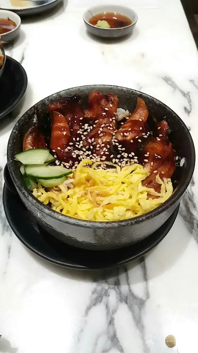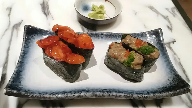 辣味三文魚:好像用了韓式辣醬拌三文魚,食唔慣。松葉蟹膏軍艦:很多蟹膏,唔錯。燒鰻魚飯:鰻魚有點韌,唔夠鬆化,味道一般。海膽吞拿魚丼:海膽新鮮,但得2片唔夠喉。燒魷魚:美味。…查看更多