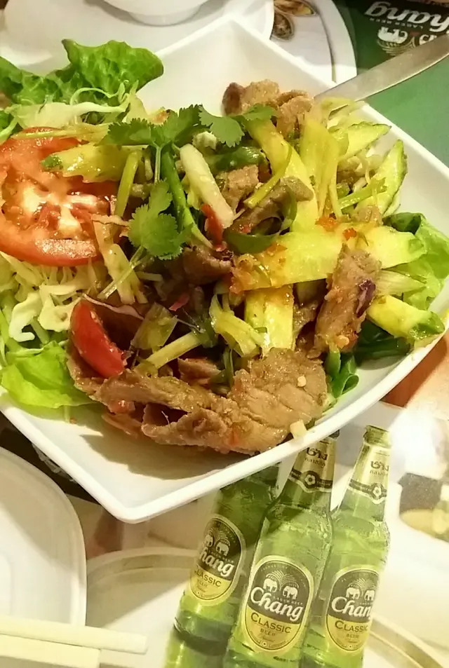 1. 燒牛肉沙律沙律有瓜絲洋葱芫茜蕃茄等,少酸,都幾辣,燒牛肉數量都幾多,肉質有點鞋口但唔韌。 整體都ok.2. 干咖喱炸盲曹本來想食香口炸魚,但上菜後先知比想像中多醬汁,魚身比醬汁浸淋左,唔脆,當咖喱煮魚咁,叫多份薄餅蘸汁食。…查看更多