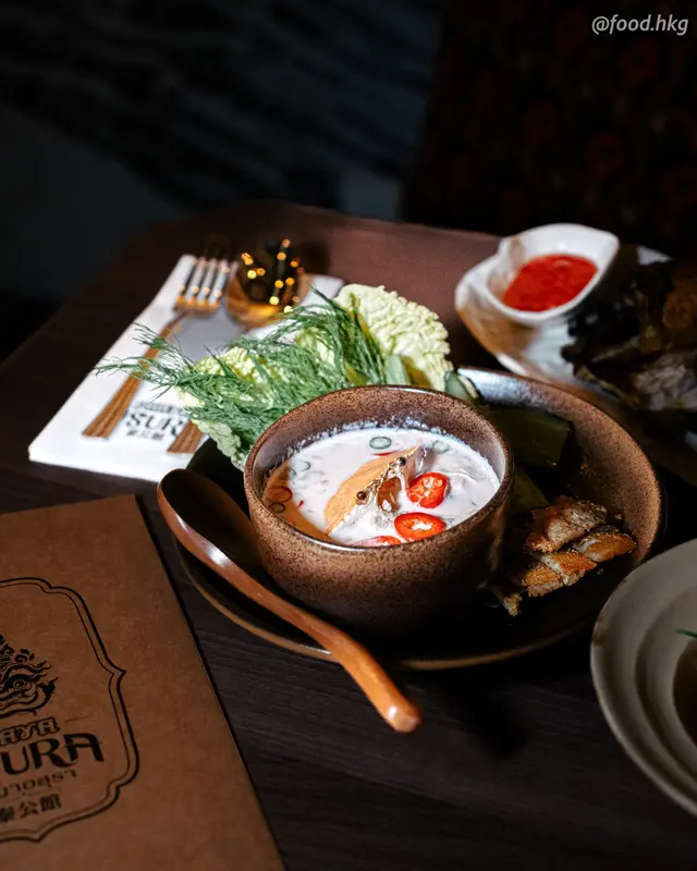 話說太子呢頭真係愈來愈多泰菜小店,今次專登嚟到試呢間成日排長龍嘅泰國餐廳。老實講,門口睇落普普通通,但一入去就聞到陣陣香茅同泰式香料味,再加埋幾位泰籍姐姐熱情招呼,個氣氛已經即時加分!環境唔算好大,但坐得幾舒服,最緊要係冷氣夠猛(食泰菜最怕熱到癲啊🔥)。今次同朋友兩個人叫到成枱都係嘢食,首先個泰式火山排骨真係無改錯名,上枱已經聞到陣陣辣椒同香料嘅霸氣!肉質燉到好淋,輕輕一撕就離骨,個湯汁酸辣惹味,但建議唔太食得辣嘅朋友點少辣就好。跟住個冬蔭功海鮮麵鍋真心巨型,兩個人根本食唔晒!湯底香濃,酸辣度平衡得幾好,海鮮料又多:大蝦、魷魚、蜆肉、帶子,仲有索盡湯汁嘅MAMA麵,呢個價錢真係抵到爛👏。另外個咖哩軟殼蟹大包都係驚喜之作,軟殼蟹炸得酥脆,個咖哩汁香滑帶蛋香,點埋個薄餅真係邪惡到極點!燒豬頭肉就燒得香口,肉質爽嫩,點埋個泰式醬汁更加開胃。至於甜品七色彩虹芒果糯米飯,打卡真係無得輸📸,七種顏色用咗天然食材整成,糯米飯熱辣辣,芒果又甜,作為結尾完美!總括嚟講,食物水準對得住價錢,專做正宗泰菜,尤其係冬蔭功海鮮鍋同彩虹糯米飯性價比高,環境同服務都唔錯。晚市真係幾爆場,建議早少少去排隊。今次體驗滿意,個胃表示非常滿足,下次一定會再encore個粉絲蝦煲同試埋個椰子雪糕!👍…查看更多