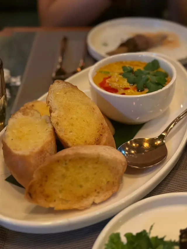 泰式黃咖喱蟹肉配蒜蓉包蟹肉鮮甜,一上枱就有好濃郁嘅黃咖喱香味,蒜蓉包外脆內軟,吸曬咖喱汁精華,蟹肉都好大嚿又多唔係好碎嗰種!.炭燒香茅西冷牛肉肉質非常鮮嫩,西冷牛肉入面包住咗成條香茅條,更加入味,炭燒香味同香茅味交融,實在好食又特別。搭配嘅醬汁甜甜地,成件事再多咗風味,大推~.烤鮮鴨配酸甜椰子醬鴨肉外脆內嫩,真係成隻鴨,加上出面唔多見椰子醬嘅酸甜,.泰式黑糯米燉蛋+三色芒果糯米飯佢哋嘅黑糯米同三色糯米粒粒分明,口感軟糯,食落去有一種香甜嘅感覺。燉蛋質地滑嫩,味道淡雅,完美平衡咗黑糯米嘅甜味,唔會過於膩👍🏻椰漿夠多,芒果都好夠甜…查看更多