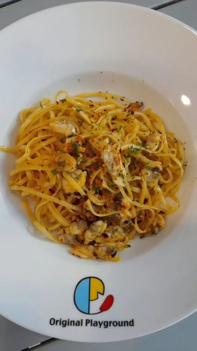 很贊的乳酪~Very Tasty下午在鰂魚涌闖進一間不太起眼的Cafe,但原來入到去發現有很多令我意外喜歡的食物同特色,同時很享受裡面有種很自由的氣氛,意外驚喜是內裡很具特色, 有玩具的擺設及書本, 天花上放置真的樹枝,鳥巢的佈置都是第一次看到的格局, 最喜歡是Bar 枱上兩幅塗鴉牆,是供客人自由表達和創作的,就像坐在間咖啡藝術館,有的客人的畫工不錯呢! 塗牆時感覺置於遊樂場般放鬆自在, 相信店主是位很有heart 同熱愛咖啡室, 猜想遊樂場的名字Playground 是這樣來的。這裡的咖啡和意粉很合我個人的口味,意粉選了店的皇牌意粉-蒜香辡椒蜆肉抄意粉,辡度剛好,聽説不吃辡的可以走辡或少辡的,咖啡很醇香比起大牌子的好飲,最後當然要試試聽聞這裡很有口碑的乳酪,果然是超級美味!! 有時就會在些不起眼的餐廳找到你的心頭好,所以 Original Playground 放心, I'll be back again 因我已愛上你的乳酪和咖啡了♡♡♡♡♡…查看更多