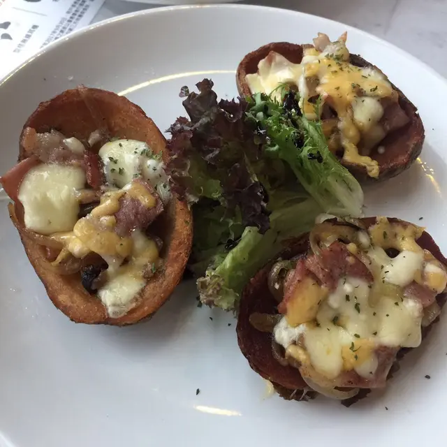 行商場行得累,想搵個地方同三五知己傾下計,入左尼間cafe。雖然尼間店既空間唔算大,但靠窗位置一流,可以俯瞰深水埗的人事物,非常悅目!黎到cafe 店,少不了一杯Cappuccino 算不錯👍不太苦,事關之前試過某些cafe 的Cappuccino 苦味。幸好今次遇上好店最美味的薯皮,材料配搭一流,食落唔膩,味道令人想一試再試。尼款真心推介!😋薄餅沒有太大驚喜,可以選涵。整體黎講,食物同飲品同價錢合理,最重要環境令人坐得舒服,而且店員服務態度很好呢!👍🏻…查看更多