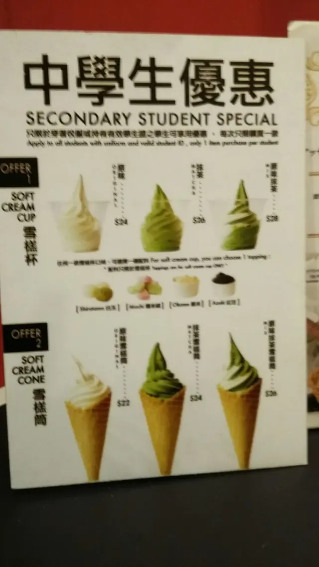 濃抹茶味,又唔會太甜(熱飲除外),正!可惜白玉似湯圓粉團,雪糕似雀巢出品~餐牌中的相有白玉三粒,但上檯只得一粒,飲到一半,先知原來果個兩粒白玉早已石沉杯底~下次叫牛奶抹茶($29)已足夠了~想叫少甜,但冇得叫少甜,幸好,一飲,甜度剛剛好,大讚!至於冰亦都唔係太多,啲冰好大舊, 唔想要都可以方便拔出來~…查看更多
