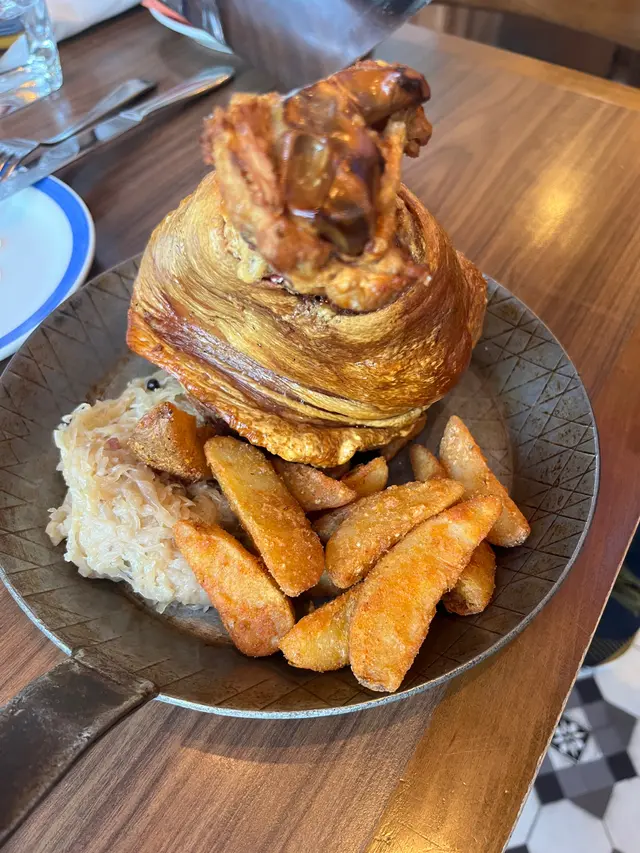 脆皮燒豬肘配酸椰菜及炸薯角