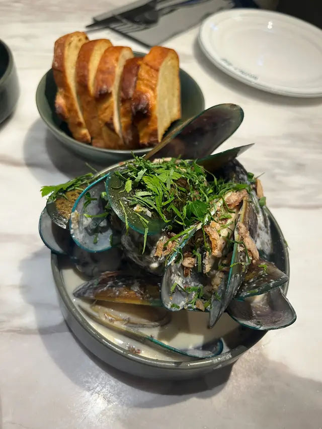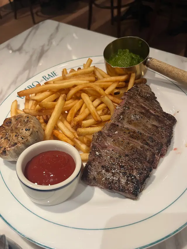 老公生日,於是特別搵左呢間環境優美的法國餐廳 Bistro La Baie 同佢慶祝,整體感覺非常愉快。💜我們點了半份的青口(Mussels),半份都有成約十隻青口,配上香濃的白酒醬汁,青口鮮嫩,沾著麵包吃特別美味,真的是完美的開胃菜。💜Seafood Ragout,裡面有各種海鮮,味道濃郁又不膩,搭配的香草提升了整道菜的層次,意粉珍珠米口感特別。💜Flank n Frites,牛肉煎得恰到好處,肉質鮮嫩,薯條外脆內軟,裡面的焗蒜頭特別香,還可以試著把蒜頭夾著薯條一起吃,別有一番風味。我最欣賞呢道菜。整體來說,這頓飯讓我們很滿意,服務也很周到。雖然係法國餐廳,但係上菜都好快。整體價錢唔算特別貴,性價比高。坐在這樣的環境裡慶祝生日,真的讓人感到特別愉快,下次一定會再來!…Read More