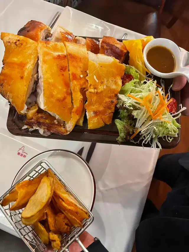 喂各位食貨!今次專程過大海,同大家發掘咗一間喺氹仔舊城區嘅寶藏餐廳——葡富軒。打頭陣嘅馬介休球夠哂正宗,外脆內軟,鹹香滋味啱啱好,完全唔會死鹹。跟住個酥皮蘑菇湯真係要畀個like,酥皮鬆化到呢,浸落濃滑嘅湯度,飲一啖已經幸福感爆棚!重頭戲葡式烤乳豬果然無令人失望!皮脆得像玻璃紙,肉質嫩滑多汁,仲帶住淡淡香氣,食完即刻想encore。最貼心係侍應們見我哋係遊客,由落單到上菜都笑容滿面,仲主動同我哋講解每道菜嘅故事,服務真係抵讚!總結:喺澳門想食地道葡國菜?呢間隱世小店絕對係心水之選!下次帶朋友過嚟食飯,一定再幫襯~🙂🙂…查看更多