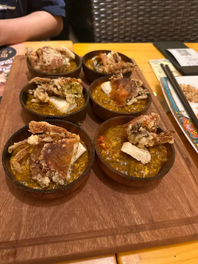 最近未有得去旅行住,唯有香港add some Thai先!揀左喺觀塘食間泰國菜,裝修報置很有泰國風味,還有流水波波。基於放工,餓鬼上身,決定怒點!點了黃咖喱鹹蛋軟殼蟹(三隻)配蒜蓉包:咖喱不會太辣有少許蛋絲等等的配料很香濃,軟殼蟹大大隻啖啖肉好爽,再點咖喱很香很惹味,最喜愛就是還有塊麵包點咖喱泰式酸辣鳳爪雜菜沙律:前菜估唔到份量咁大!酸酸甜甜令人胃口大開,無骨食得很過癮。曼谷經典手打蝦餅:蝦餅係add some Thai必備的菜單,最喜愛他的彈牙,脆口又不會炸到成口油。馬拉盞炒通菜:馬拉盞要有少許辣才會惹味,炒得很有鑊氣,必食!鹹蛋黃酥炸海蝦金邊粉:炸蝦沾上鹹蛋黃,忍不住蝦殼都要放哂入口,咸香味超惹味,金邊粉炒得條條分明,很乾爽,份量超大碟。飲品點了泰式芝士奶蓋奶茶和西貢少女少女有熱情果,薄荷葉加青檸,味道十分清新,可以中和食物的重口味。而泰式奶茶岀奇地不會過甜,可能奶蓋混和了甜膩道,很濃奶香味。最後當然要用最愛的芒果糯米飯去完結豐富的晚餐啦! 糯米飯煙韌有口感再配椰汁同芒果,真係絕配的甜品!…查看更多