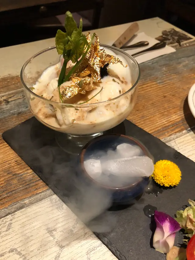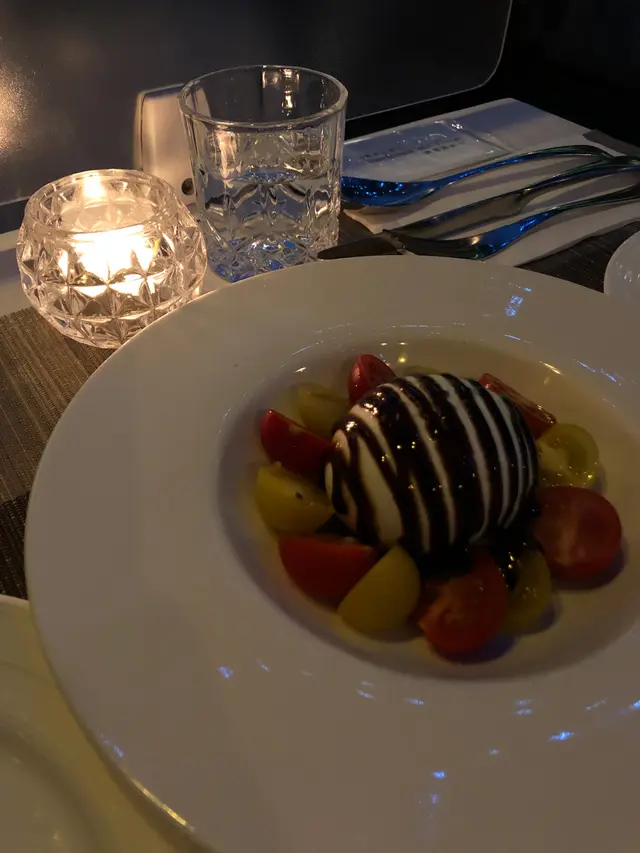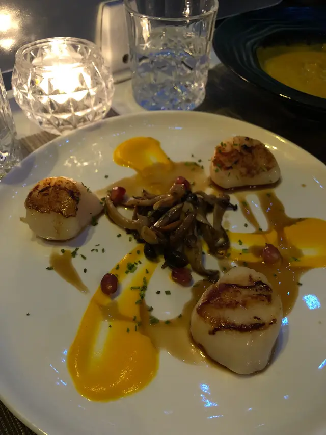 Sky726 位於 T.O.P. 隔離,行完一日街行幾分鐘就到餐廳,好方便~上到最頂嘅25樓,一出𨋢就留意到餐廳嘅佈置,成個天花佈滿小燈,好有情調~晚餐時段嚟可以由日落睇到夜景,去到夜晚嘅景色如繁星點綴一般,同餐廳嘅佈置互相映襯.前菜叫咗燒焗南瓜湯、流心水牛芝士伴蕃茄同香煎煙薰慢煮北海道帶子。南瓜湯用燒焗方式製成濃湯,令南瓜嘅甜味突出,而且又濃郁又滑。水牛芝士配蕃茄排得好精緻,切落去真係幾流心,本身食芝士有啲漏,但配埋番茄個配搭就較易入口,配搭一流~帶子就好厚肉,中間配以菇同石榴粒,令整體味道更加昇華!主菜就叫咗兩款意粉 - 意大利手卷意粉伴野菌、珍寶虎蝦意大利飯伴龍蝦牛油汁。手卷意粉比較少見,係比較硬身嘅意粉,只是略嫌辣肉腸太多,但咁樣先可以令意粉更有味。至於意大利飯,唔係煮得過軟或太硬,完全吸收哂龍蝦汁嘅味道,加埋啖啖虎蝦肉,味道一流!成餐食咗大約每人$500 ,好抵食。雖然望落每碟唔算大份但食落又幾飽。而且食物選擇都唔少,主菜亦設有素食選擇,非常貼心。除咗係拍拖/紀念日好去處,餐廳寧靜嘅格局亦適合老朋友聚舊傾談一番.…查看更多