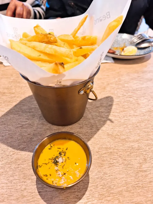 飯局聚腳點,環境舒服,如能坐𥦬邊位,見到香港海景就更好。4人聚餐,天氣涼涼地,食吓暖苙苙的三寶河(牛肚、牛丸、鮮牛肉片),暖吓肚仔,牛肉不靭,每人分少少,可以食多兩味。另外,試左芽莊炸物