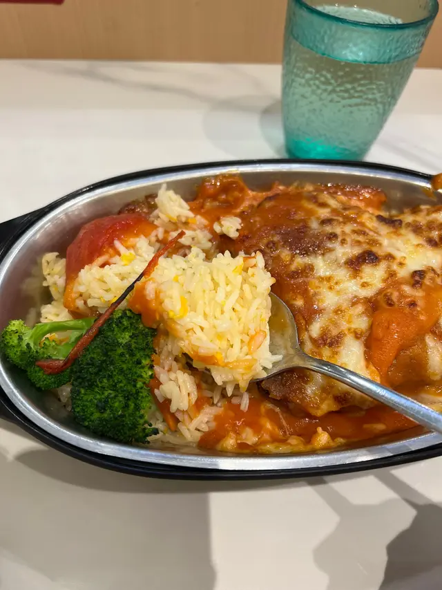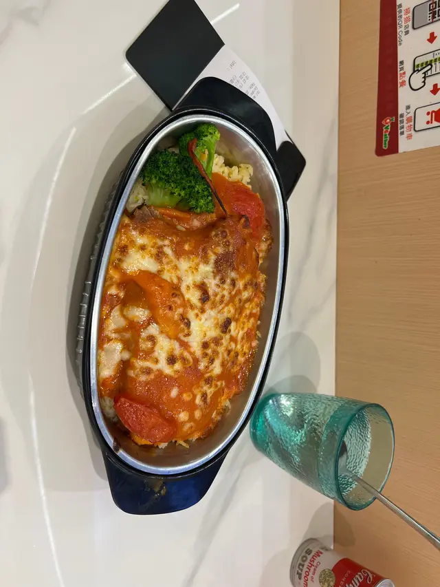 焗左大概18分鐘就來了,唔算太耐,即焗熱辣辣,色澤均勻,真係好吸引,炒飯底唔錯,粒粒均勻,茄汁有新鮮蕃茄,加上芝士口感一流,豬扒都好香口,很滿足