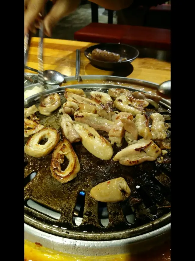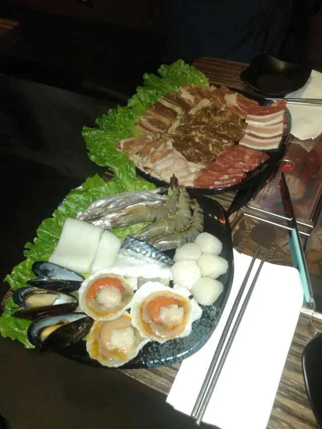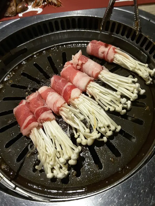肉类:金菇肥牛、猪扒、雞翼、牛肋骨、辣豬肉、雞肉、牛肉、魷魚、辣豬趴、魷魚蘇⋯辣豬趴醃得夠入味、魷魚好新鮮彈牙,魷魚蘇好大件,牛肋骨切得好均勻,牛肉好嫩不老,豬趴都有辣有唔辣,各取所需。生果甜品:西瓜、火龍果、泡芙、蛋糕、蛋捲、糕點。韓國蘇打任飲:蘋果蘇打、藍莓蘇打。三文魚刺身、各類壽司,仲有豬腳薑添,人參雞湯,蕃薯糖水、湯圓布丁、雪糕。果然無選錯,金甲環境衛生都可以,通風唔錯,盧頭獲利夠大,燒完一味又一味,食唔停口,$200蚊樓下可以食咁多美食,實在抵。…查看更多