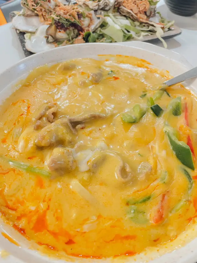 大圍泰禾美:地道泰國風味!一直都係去開九龍城泰禾美食泰菜,除咗食物惹味之外,都貪佢就腳,而且坐得舒服,就算同朋友一行十幾人去都可以慢慢食。上個禮拜同朋友去咗大圍分店食飯,真係有驚喜!呢度裝修風格同九龍城好唔同,問過鋪入邊嘅姐姐,原來上一手係打邊爐餐廳,亦都解釋咗點解枱面會有個電磁爐😆一入到去就聞到陣陣香料味,即刻令人胃口大開!黃咖喱雞:呢個絕對係必點!咖喱香濃得嚟唔會太辣,椰奶味好突出,但唔會搶左陣咖哩味,仲有少少香茅同其他香料嘅清香,層次豐富,雞肉非常嫩滑,咖喱底稠度非常適中,配合埋蒜蓉包/ 薄餅,好容易食到上癮。燒雞:外皮燒得香脆,肉質鮮嫩多汁,點埋佢哋特製嘅酸辣醬,更加開胃!份量都幾大,如果有其他嘢食嘅話,4個人食半份都綽綽有餘。燒牛肉:牛肉燒得啱啱好,外焦內嫩,咬落去仲有肉汁爆出嚟,好正!佢哋嘅秘製醬汁辣辣地,同牛肉好夾,用嚟送酒係非常之正!軟殼蟹:一道考功夫嘅菜,今次個軟殼蟹炸得金黃酥脆,蟹肉鮮甜之餘又有泰國香料加持,更加惹味!蒜蓉包& 薄餅:雖然係配角,但都唔可以錯過!麵包焗到外脆內軟,蒜香味十足,薄餅亦做得非常鬆軟,點埋黃咖喱汁食,簡直係絕配!當晚其實食咗好多其他嘢,唔特別每樣都講喇,其實每一樣都非常惹味同埋保持到水準,誠心推介!總括嚟講,大圍泰禾美嘅食物質素好高,價錢合理,保留到九龍城嘅水準,而且服務都唔錯,絕對係大圍區食泰國菜嘅好選擇!如果你都想試吓地道嘅泰國風味,不妨去試吓啦!**溫馨提示**:餐廳有2層,但係weekend嘅時候都有唔少人等緊位,所以最好提前訂位。…查看更多