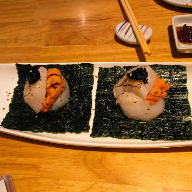 一直都好鍾意食浜燒, 呢日興起就搵下銅鑼灣邊到有得食啦, 點知比我搵到佢一入到去坐低就送咗2杯清酒做welcome drink, 然後佢個staff都好好咁介紹幾款唔同既清酒比我地, 而家仲做緊買一送一之後就開始叫野食啦, 一開始我地首先叫咗個特上漁獲浜燒盛合(二人前) $698包括 珍寶大蝦, 松葉蟹腳, 鮑魚x2, 蠔x2, 帆立貝x2再另加$100 將嗰2隻帆立貝轉做日本活帆立貝, 因為佢本身嗰個係冰鮮既隻蠔鮮甜又肥, 隻活帆立貝夠大隻又好味, 隻蝦既Size係夠2個人食既份量, 一啲都唔算少其實我地個重點都係想食佢個味噌蟹甲羅燒 (配多士) ($78/1pc)亦都無令到我地失望, 有啲地方蟹膏既份量唔算多, 但係佢燒完係成個蓋都有膏食係等緊佢幫我地燒海鮮既期間, 我地叫咗2隻火炙帶子海膽包($98/1pc) 食住先, 佢係一整粒帶子包住啲海膽, 然後有啲黑魚子係面, 底係一塊紫菜, 一隻起碼要分3啖先食得哂, 一個字 — 正!最後仲叫咗一條伍魚一夜干(馬友)浜燒 ($198/1pc), 好多舖頭如果你想食一夜干都一定要預早訂, 無諗住我地walkin都可以叫到嚟食, 可惜佢一嚟到就掛住食, 唔記得影相. 佢地會係廚房燒完直接拎出嚟比你食, 整體嚟講唔算乾有啲汁, 啲肉夠淋, 2個人食啱啱好食完上面嗰啲已經夠飽食唔到其他野啦整體嚟講都係一間高質既浜燒餐廳…查看更多