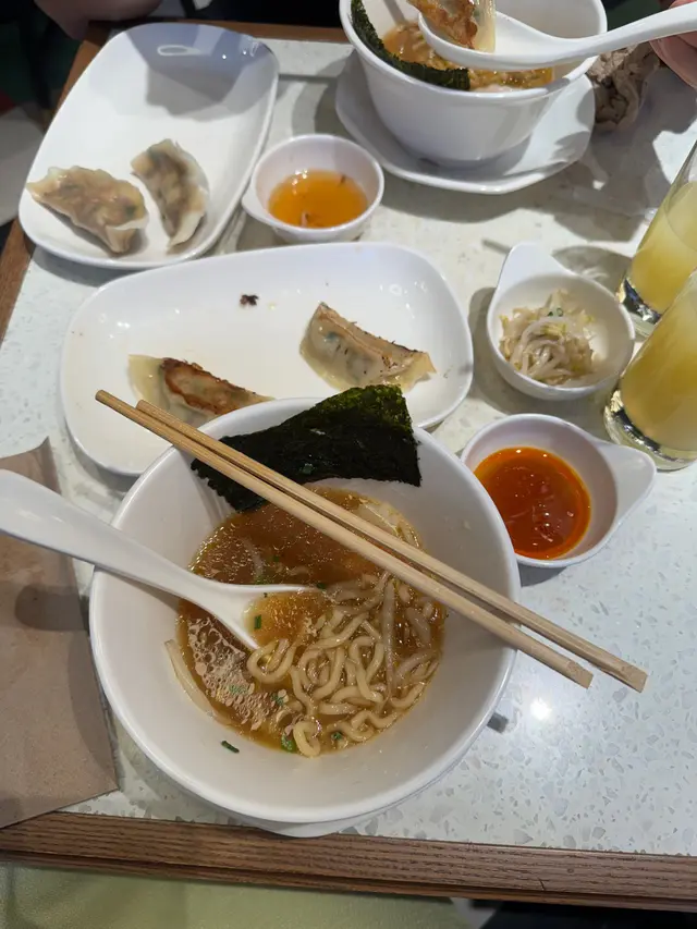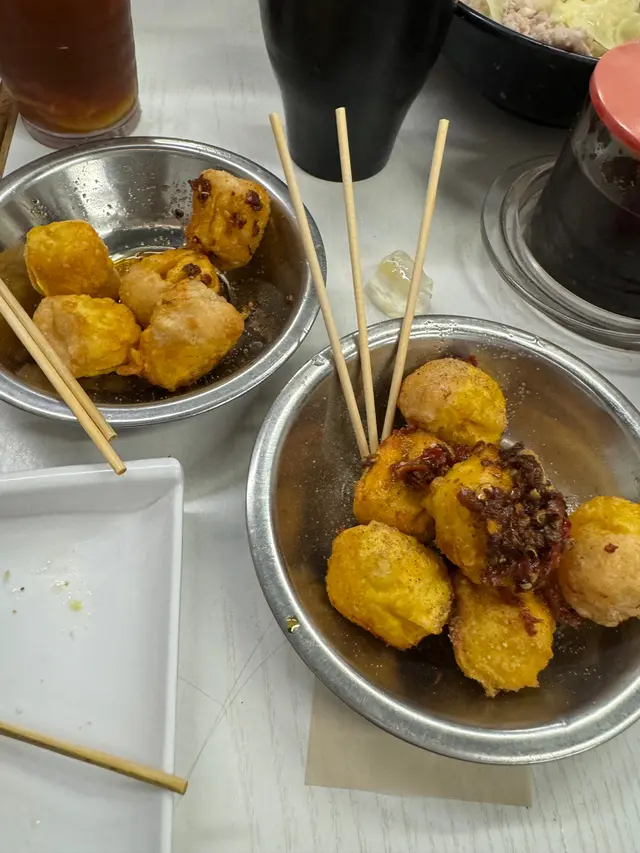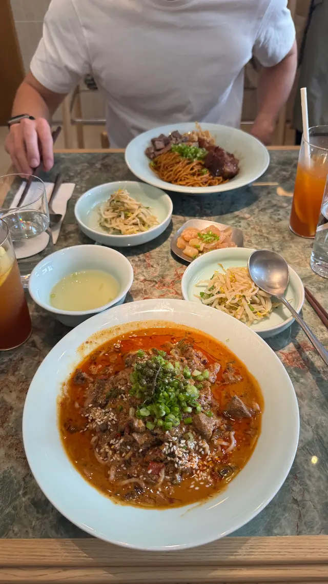 試過撈麵同擔擔麵撈麵個麵其實正正常常,但啲配料好好食因為叉燒依樣嘢,如果唔係用豬肉嘅話,其實係會有啲奇怪,但難得佢個牛叉燒係同到個醬嘅味道係夾,而且幾好食。啲牛舌都好好食,但我覺得最好食嘅其實係佢跟餐嗰個清湯,意外地好有味同時間又好清新,好飲!擔擔面都好好食,佢係比依家市場上嘅擔擔麵辣大概三成左右。我覺得係幾好食嘅,但就冇乜肉囉,因為擔擔麵其實都係肉碎㗎嘛,所以如果你想食粥嘅話,都係食返撈麵好啲,但擔擔麵係值得一試嘅,不過如果再嚟,都會選擇食返撈麵。之前我哋都好懷疑點解啲人喺度食麵要食咁耐,跟住我食過一次擔擔麵之後,我就明白,因為撈麵係可以15分鐘之內食完,但個擔擔麵真係好辣,同埋食咗一半之後都覺得好膩,係要慢慢食😂 所以依度唔似珍姐,table turnover rate 低好多,唔建議夏天去,排到差啲中暑…查看更多