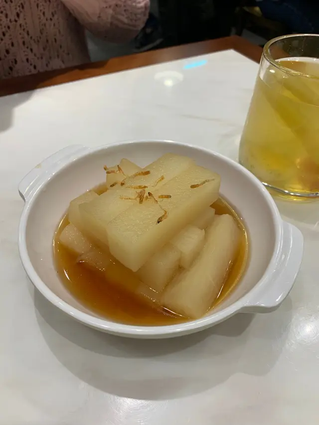 小食叫咗大地魚湯浸蘿蔔 擺盤好有心機但味道同口感比預期有所不同。。佢系偏硬和淡味