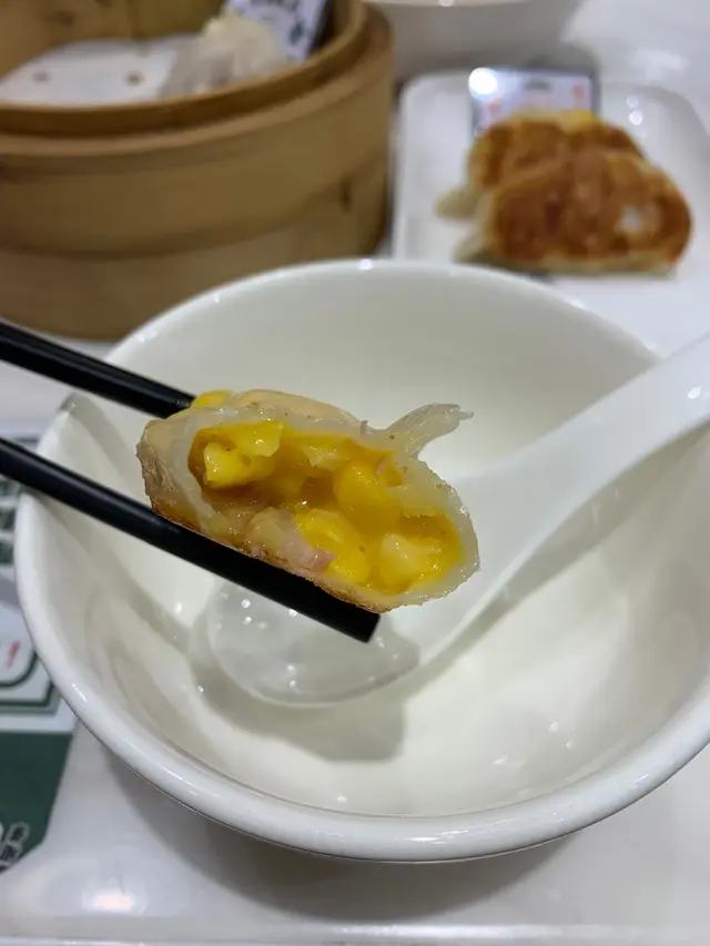 十全肉骨茶小籠包一吸個肉骨茶湯汁就已經雙眼發光!湯汁濃郁 冇諗過味道可以咁夾 湯汁份量足夠 皮夠薄趁熱食放入口 絕對能夠滿足你嘅味蕾 大推!一開始都擔心雙重芝士粟米煙肉餃會好滯 幸好餡料份量平均 仲有啲juicy~ 鍾意佢有好多粟米粒 有咬口