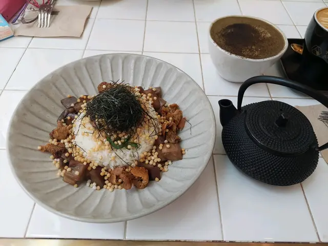 餐牌應該冇人更新過,食唔到有d失望 😂原本想叫鐵觀音拿鐵,竟然暫停供應 🥲 叫左焙茶拿鐵,雖然有加豆奶,但豆味冇遮蓋茶味,好清新唔係太濃。蜂蜜鮮奶咖啡,非常之甘中帶苦,蜂蜜味唔係好飲得出,中意飲咖啡既人應該覺得正 🧐 茶漬飯一定要試啦為左飲多d茶,我覺得茶湯唔夠甘,不過唔咸都ok。叫左咖啡味pancake ,佢既精髓係咖啡牛油,真係好想問可唔可以比多一粒 😲 有機會下次試下飲佢其他凍茶😬…查看更多