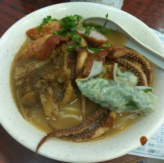 呢間車仔麵勁多好餸食,有啲餸一般車仔麵鋪未必有,今次食豬頸肉豬軟骨魷魚韮菜餃瀨粉豬頸肉今次啲豬頸肉條邊炸得有啲硬有啲乾,不過好彩唔係邊位嗰啲就唔硬唔乾豬軟骨呢次得一舊,不過勁大舊,軟骨勁多唔會太淋又唔會太硬魷魚做得好好唔會有梘水味韮菜餃勁多韮菜唔知有冇食錯,好似冇肉瀨粉份量唔多又唔少,唔會好似其他鋪頭咁,粉麵勁多,啲餸勁少…查看更多