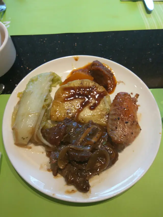 最後衝刺整月餅,唔夠料再出去買,順便食埋飯先返屋企,終於坐到卡位黑椒牛仔骨煲好好味,牛仔骨夠淋,夠黑椒味,唔會好鹹松耳銀針浸翠苗呢個夠清,但係冇諗過會有銀芽,不過加埋啲翠苗食,好爽脆,好食素鵝呢個佢唔記得落單,我哋見好耐都未黎,我哋問佢,佢同我哋check完話冇落,跟住幫我哋落番,好快就黎咗,唔記得影相,食咗兩舊先記得,入面啲料唔會好鹹,都幾多料紅燒竹苼豆腐呢個啲竹苼勁小,成碟得6舊,好彩啲豆腐都好滑我哋再要咗兩個自助吧…查看更多