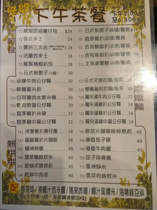 朝早喺屋企食咗粥,到4點幾唔係好肚餓,不過本身自己個胃唔好,唔可以唔食嘢頂到今晚食飯先食,咁就落去食個茶餐香茅豬扒米綫冇加價,不過明顯細碗咗,已經發現咗一段日子,唔知係咪轉咗廚師,啲嘢係淡味咗,本身自己都唔係食得好鹹,但係佢眞係可以加多兩粒鹽餐蛋治味道同一般冇分別,不過有啲奇怪嘅係,唔知點解兩塊午餐肉都喺分開3節凍檸茶(+$2)一杯要走甜,一杯少甜,今日好奇怪走甜嗰杯連茶味都走埋,少甜嗰杯啲茶味就正常另外,想佢哋改善下嘅,佢哋個下午茶同個宵夜個餐牌內容係一模一樣嘅,呢個可以接受,但係啲餐牌裏面啲食物可唔可以定期換下,幾年都係呢啲嘢食,好悶…查看更多