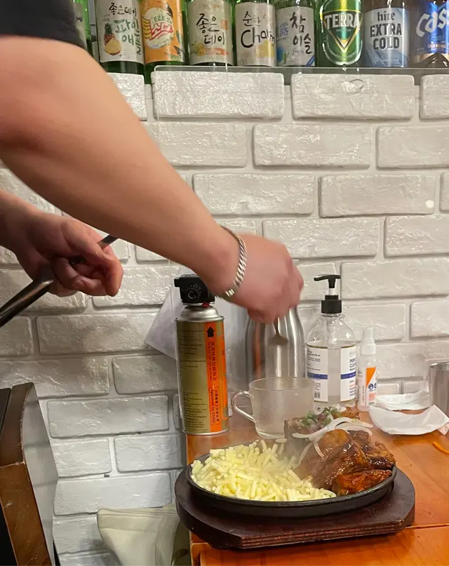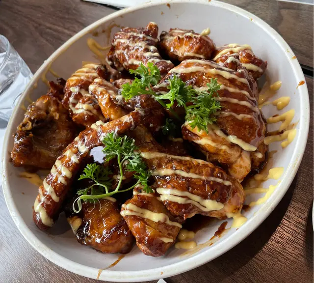 不是炸雞,是社內相親烤雞的Goobne,來一個相親套餐,味道不錯。選了果味醬油蒜香味的社內相親烤雞,烤熱程度適中,果醬如蜜糖般的甜味老少咸宜,特別是雞翼尖烤得很爽脆。還有雞腿的軟骨仍保留著脆軟口感。