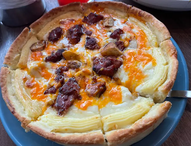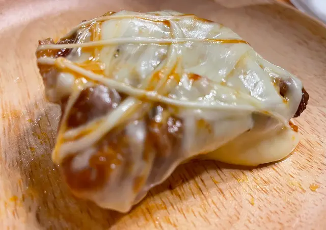 套餐另一主力,蜜糖BBQ芝加哥薄餅,其實是非常厚身的烤芝士,味道本身調味不俗,但是這麼厚身的芝士及薄餅邊就很快令人飽足,不能多吃。一碟烤雞不夠分,再點多了一份甜辣味的社內相親烤雞,色彩鮮艷得多。原來所謂甜辣原來是一點點辣,非常適合怕辣的我。