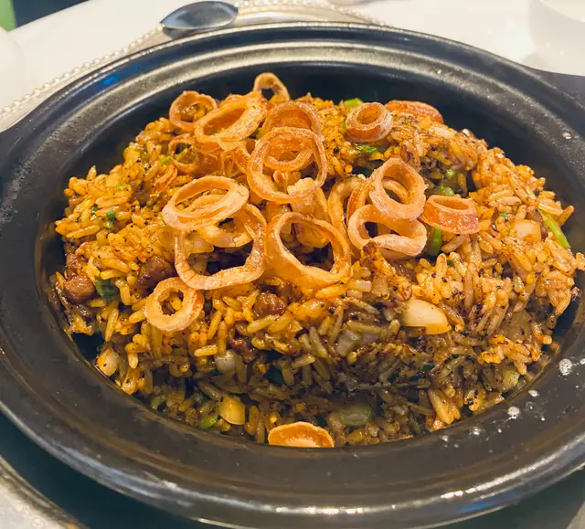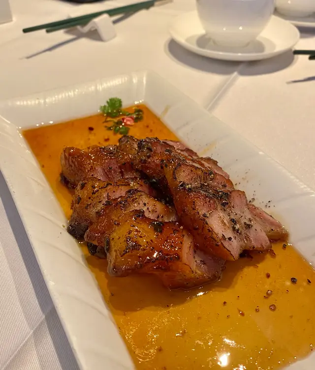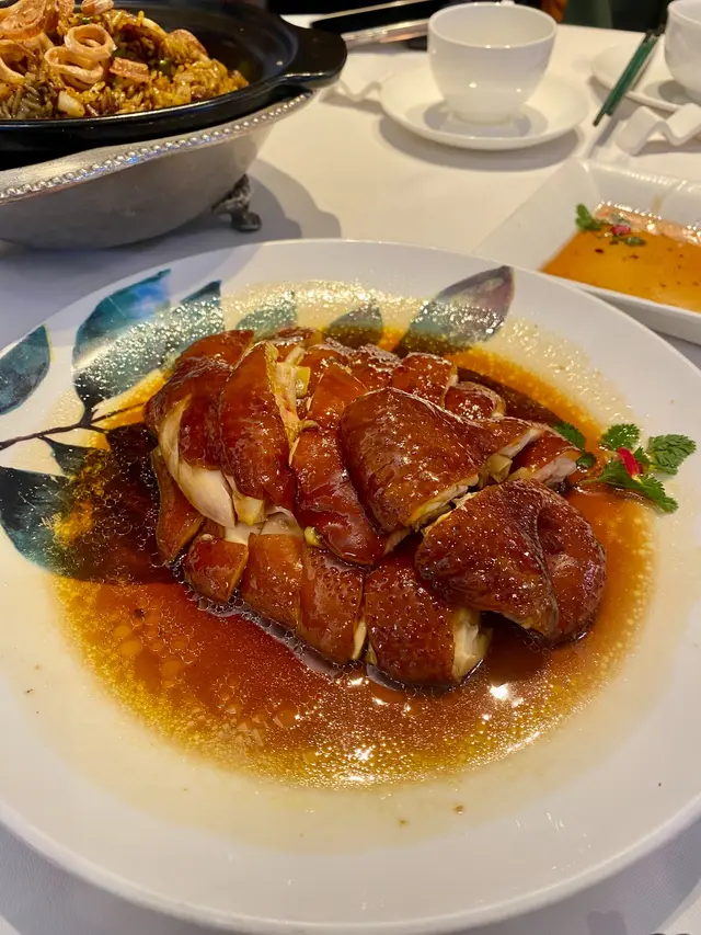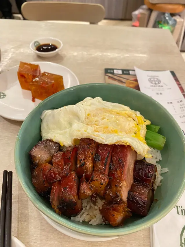 這間新式裝修中式酒樓,我嗌咗蜜汁叉燒煎蛋飯配杞子桂花糕。叉燒雖帶傳統炭烤香氣,但肉質偏乾韌,蜜汁甘香卻未能彌補口感不足;太陽蛋煎得恰到好處,蛋黃流淌拌飯是一大亮點。 但整體性價比一般。杞子桂花糕:共有3塊(我已吃了一塊先影相) ,晶瑩剔透,入口沁涼,桂花的淡雅芬芳與枸杞的微酸本應相得益彰,可惜糖漿比例稍重,甜膩感掩蓋了原本的清雅。環境舒適,服務周到,適合想悠閒用餐的客人,但以這個價位而言,食物質素仍有進步空間,同價位確有更佳選擇。**評分:★★★☆☆(3/5)** …查看更多