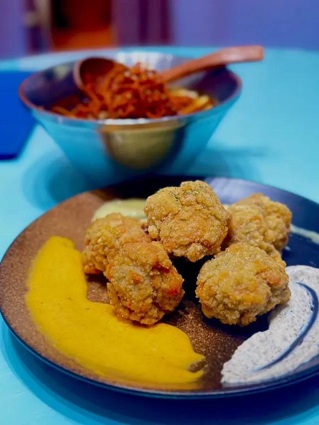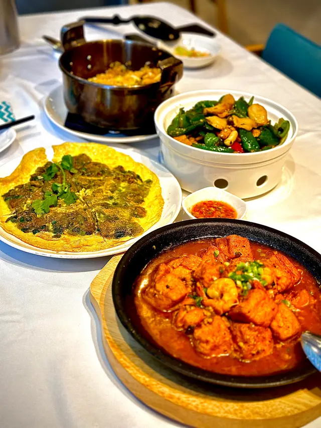 金磚蒜蓉包 ($68/4件)一上枱就知冇伏!麵包烘到金黃脆口,一定要叫埋咖哩大頭蝦點咖哩!一定要趁熱食超好食 生蝦刺身 ($168/8隻)蝦肉用冰碗鎮住上枱❄️,夠晒儀式感!每隻都爽脆彈牙,蘸埋自家製泰式辣汁(勁多蒜粒+青檸汁),酸辣度直衝天靈蓋🌶️黑胡椒粉絲大蝦煲 ($268)全晚MVP! 原隻開邊大蝦好大隻,蝦膏多到核爆💥 粉絲索盡黑椒汁+蝦油精華,仲有啖啖洋蔥絲增加口感,鹹香惹味到想舔煲!建議3-4人分享,否則飽到上心口泰式咖哩大頭蝦 ($198/隻)咖喱汁係靈魂‼️ 椰香濃郁帶微甜,溝埋蝦膏變橙紅色,**秘技:拎蒜蓉包狂蘸汁食**,罪惡感爆錶但停唔到口~蝦肉厚實新鮮肉碎生菜包 ($88)肉碎炒得乾身唔油膩,加入薄荷葉同青檸汁好清新🌿!生菜新鮮脆口,自己包住食過癮又解膩椰汁雞湯 ($88)酸辣平衡得剛好,椰奶香滑唔「削」喉,雞肉嫩滑唔鞋口,熱辣辣飲超暖胃! 芒果黑糯米飯顛覆傳統嘅神作!芒果🥭甜到漏蜜💛 糯米吸滿椰香煙韌軟糯... 食完想encore! 泰式椰汁千層糕煙韌控必點!層次分明咬落QQ的,椰香天然唔假甜,當飯後小甜點啱啱好~ 🥤 飲品抵飲之選凍泰式綠奶茶 ($36)茶底甘香唔澀,甜度適中,飲完成個泰國返咗嚟~ 椰汁椰果冰 ($32)椰果多到差啲瀉!椰奶味濃,解辣一流✅ 大份夾抵食!4-6人聚餐最划算,海鮮+小炒+甜品全制霸~ 排隊提示週末晚市6點後必排隊!建議5:45前到,等第一輪入座快靚正~ …查看更多