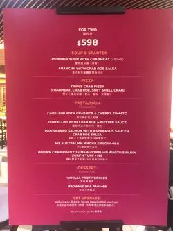 今日出咗去MegaBox行街,行到好攰,順便喺度食埋晚餐。搵食搵到上去11樓,見到一間幾大又舒適嘅西餐廳,門口個Menu即刻吸引咗我,因為竟然係有大閘蟹主題套餐。先來個蟹肉南瓜湯,香甜美味,令我忍唔住一啖接一啖,好快就飲晒。再嚟一個前菜,就係意大利炸飯團配蟹粉沙沙。蟹王三重奏pizza,一次過嘆晒蟹肉蟹粉軟殼蟹,超級豐富。軟殼蟹都幾大隻,而且好飽滿,一人食半隻都非常夠。主菜方面,我哋加咗錢食M5和牛西冷。牛扒要咗五成熟,切開𥚃面粉粉嫩嫩,見到都流口水🤤肉味好濃,以呢個價錢都算唔錯。到甜品喇,本身好想試吓個Brownie,但已經好飽,所以都係點返泡芙。雲呢拿味嘅泡芙每份有三件,一口一件,係一個完美嘅結束。…Read More