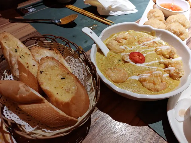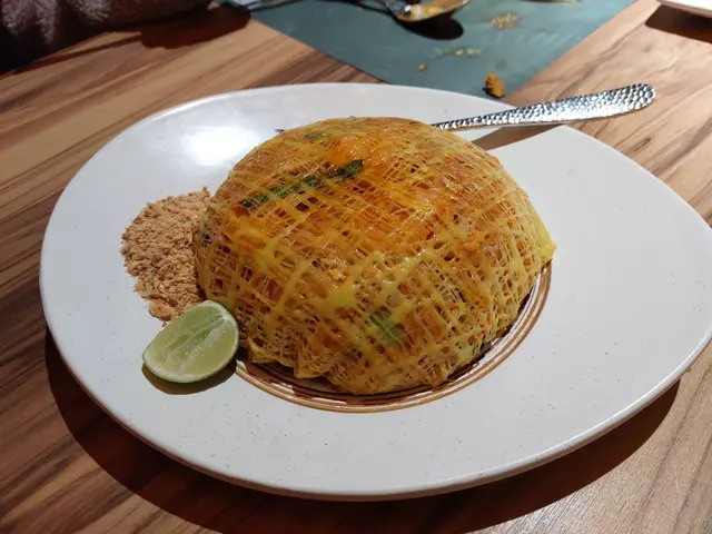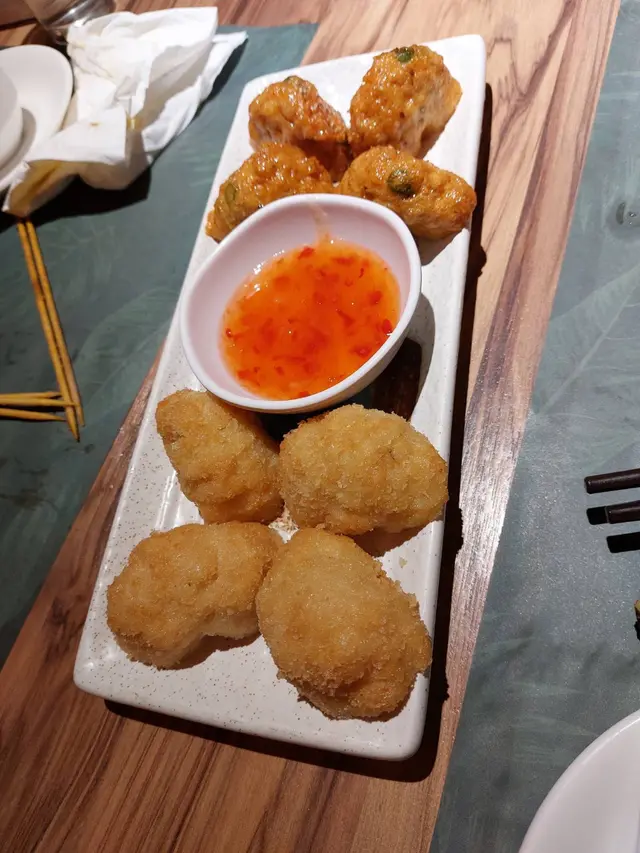 呢間餐廳其實已經食過幾次,因為公司喺附近,貪佢環境舒服、座位寬敞、lunch set 都幾抵食。餐廳喺地牢,但接待處喺地面,而且門口放左好多有泰國特色既擺設,好易認。地牢面積好大,有好多卡位同圓枱,通道都好闊,仲有送餐機械人。我地今次叫左4人餐,有6款食物加飲品,人均點費$120拼盤 (蝦餅、魚餅各4件):每樣都大大件,魚餅有淡淡香茅味,好正!蝦餅夠脆、肉厚而且彈牙,推薦。串燒沙爹(豬、牛、雞 各兩串):雞肉最嫩最多汁,牛同豬都唔差,但相比之下就雞肉最出色。沙爹汁都好味,滿滿花生香、略帶甜味又唔會過鹹。燒豬頸肉沙律:豬頸肉燒到脆邊得黎唔刮口,沙律基底有洋蔥番茄菜絲等,我覺得洋蔥太多,如果加返多啲菜絲會平衡啲。個汁酸酸地好開胃,只有好輕微既辣。咖喱蝦配焗蒜蓉包:蝦係蘸上薄薄粉漿再炸,大大隻好爽口。咖喱毋有椰香、唔辣,略嫌配料太少,印象中只有洋蔥。蒜蓉包好好味,法包吸滿蒜蓉牛油,焗既㬎間控制得好好,夠熱夠香夠脆。建議唔點咖哩汁直接放入口。泰式炒什菜:雖然有‘’泰式‘’2字,但有別於坊間常見用既馬拉盞/辣椒。而係好中式咁清清地,但咁樣反而仲好,因為其他野都係濃味,呢度菜可以清下味蕾。泰式炒金邊粉:賣相好靚,金黃色蛋漿整成一個網包住碟金邊粉。味道正常,要讚既係有大量花生碎 同青檸,喺我眼中,呢個配搭係炒金邊粉既精髓。總結:每人$100多啲,有齊沙律小食前菜主食飲品,好滿足。…Read More