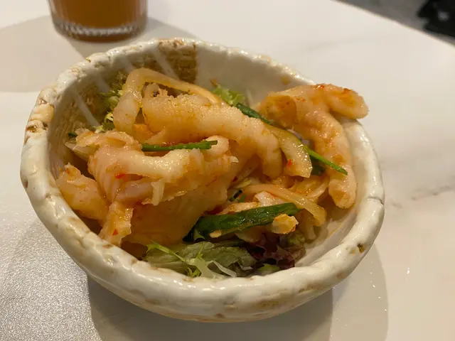 留意到最近megabox開左間新泰菜,一於試下好唔好食🥳我哋一行5人無book位,好好彩安排到張角落圓枱,仲有塊簾私隱度十足午市套餐包前小食、主菜、飲品,每位百零蚊左右,價錢可接受我哋5人叫哂餐牌4款小食鹹蛋薯條堅好食,脆脆既薯條外面沾鹹蛋醬,好香我哋叫左兩份牛油果素菜米紙卷有3大舊,咬落去爽脆,味道清新,唔錯😋米泰無骨酸辣鳳爪正正常常春卷無咩特別冬陰功大蝦炒意粉午市套餐加$28,賣相唔錯,但味道普通,唔夠冬陰功味泰式炭燒豬頸肉青咖喱配椰香飯一上枱有d驚訝🙀,我哋再睇睇個餐牌真係青咖哩喎。青咖喱原來就係果兜野,份量同點米紙卷既酸辣醬一樣,非常少😂同一款兜裝醬同青咖喱,可以知道青咖喱既份量非常少芒果椰子沙冰🍧跟餐加錢,棉棉既沙冰上有芒果肉同椰漿,似甜品多過野飲…Read More