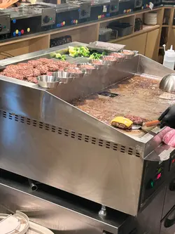 分別圍著中間的中島, 即場現烤漢堡