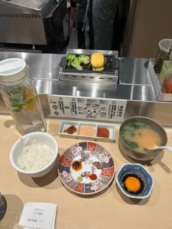 「肉肉大米」為日式和牛漢堡. 基本套餐價為$95起. 已包兩件和牛漢堡, 生蛋黃一個, 和任添白飯和面鼓湯.