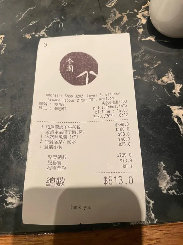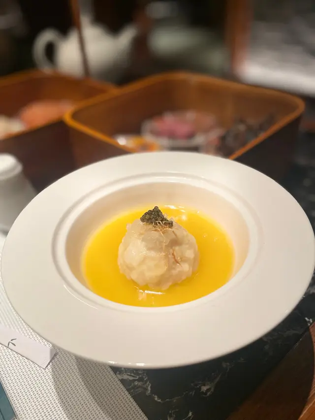 除咗有京滬好常見嘅龍井之外,人蔘烏龍茶係好少見!要!小食有毛豆、白蘿蔔同花生小魚乾,開胃唔錯!朋友係衝着佢嘅金湯水晶獅子頭Double-boiled pork & fish ball in pumpkin bird’s nest soup嚟 $188用咗燕窩、長江鮰魚、黑豚肉、蟹粉製成!佢另外都有傳統嘅獅子頭,不過嚟到一定係食個更特色嘅!蟹粉係夾心係入面,咸香又鮮!有豚肉都唔會令口感有硬厚!燕窩比例算多,金湯濃!另外,宋嫂鮮魚羹 Braised shredded fish soup $88 都係我好想揀飲嘅湯!料多,特別木耳好爽口,增加口感!魚鮮都唔腥!龍蝦鮑魚下午茶 $398/2位前菜 Appetizer鎮江肴肉 Chilled crystal ham served Zhenjiang vinegar 一口肉加骨膠原啫喱😆煙燻溏心蛋 Smoked soft-boiled eggs with black fish roes有煙燻鹽香配溏心蛋,相當唔錯!蜜汁脆鱔 Crispy eei in honey sauce脆口唔油!四喜烤麩 Roasted gluten puff with mushroom有埋黃花菜幾特別,烤麩都唔會一口油!配菜 side dish鮑汁扣鮑魚 Braised abalone in abalone鮑魚汁濃甜,鮑魚口感實淨😁點心 Dim Sum個園素菜餃 Steamed vegetarian dumpling皮有Q感,素菜都香青味。招牌煎小籠包 Signature pan-fried pork dumpling Ciao Long Bao煎香個底,多湯汁!豬肉唔豬蘇味,如果可以遲少少嚟熱啲更好。桂花糖蓮藕 Osmanthus lotus root stuffed glutinous rice 不過不失,唔太甜炸芝麻湯圓 Deep-fried sesame glutinous dumpling 內外都多芝麻,爽!麵 Noodle開邊龍蝦湯麵 Lobster in soup noodles - 標明有四兩重,每位有半隻!呢度已經值回票價😆 龍蝦湯勁濃勁蝦油,我哋都飲哂,超正!大驚喜!龍蝦肉都香軟!飲品 Drink飲品都好貼心有兩杯熱飲兩杯凍飲選擇,我哋就揀咗熱生薑蜜 Honey ginger同埋熱柚子蜜 Honey pomelo。話晒今日黑雨又紅又黃雨,去下濕氣😗…查看更多