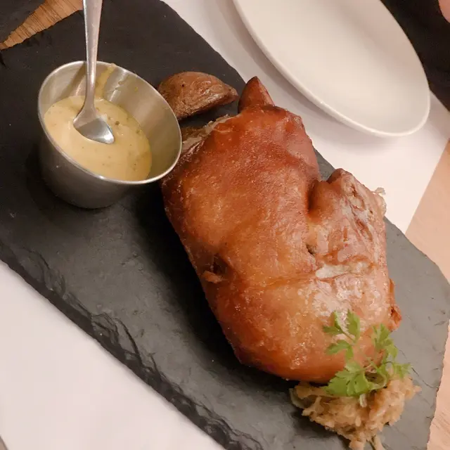 今日係520 💕, 5月20號,🥰特登同老公book咗間餐廳撐枱腳,第一次嚟,因為聽講呢度有個招牌豬手好好食一入到去個環境好舒服,店舖裏面啲裝飾好特別,西式高貴之餘😎有少少中式,好似又有少少泰式,總之成間舖個感覺同氣氛都好好,好喜歡佢頭頂個水晶吊燈,我哋叫咗幾個菜👍🏻有佢哋嘅招牌乳豬,另外仲有個牛扒😊,牛扒最吸引我嘅地方就係嗰個芥末朱古力醬,原來朱古力同牛扒都幾夾‼️‼️牛扒嘅質素好高,另外仲叫咗個雞鎚,老闆話係有少少印度風,都幾特別,上菜前有個南瓜湯老公話好想再食多次,因為好耐都未試過食一間餐廳道道菜都係好食,林尾仲叫咗個甜品🍮係窩夫雪糕,好滿足呀…查看更多