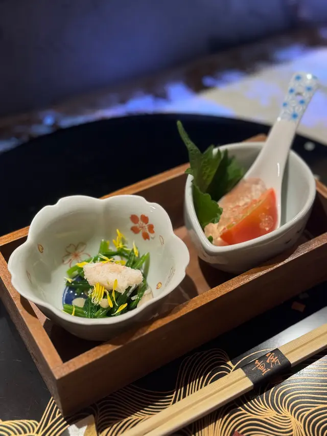 經朋友介紹黎試呢間25品多款式性價比omakase! 先以多道前菜,酸酸甜甜的沖繩水雲配松葉蟹肉、入口綿密的鮟鱇魚肝配柚子酸汁、北海道汁煮黑梅貝、香濃口感豐富的蟹膏豆腐配蟹肉德國黑魚子、新鮮彈牙的沖繩小龍蝦刺身等打開味蕾。當晚我覺得好吃的包括北海道牡丹蝦配蝦膏,蝦肉鮮甜creamy,蝦醬濃香。3道海膽的菜品最令人留下深刻印象,第一道係奢華感滿滿的赤身醬油漬海膽卷,極上的北海道馬糞海膽鮮甜無比。第二道紫海膽配紫菜天婦羅,紫海膽味道相對清雅,配上炸紫菜味道層次豐富。第三道係口感軟綿的白海膽配上白脆鱈魚乾,加上淡雪鹽,口感豐富。北海道蠔肉身厚肥,海水味淡,蠔肉甘甜鮮味。另外仲可以一次過食曬秋刀魚、赤貝、螄魚、白見貝、金鯛立鱗燒、松葉蟹壽司、黑龍配洋蔥漬、慢煮4小時的磯煮鮑魚、拖羅同火炙腦天無得輸🥰筋子(未醃製過三文魚籽)味道濃郁,入口滿滿幸福感。最後不少得甜點,焙茶雪糕香濃滑嫩,雷電赤肉蜜瓜甜美多汁。是令人快樂又滿足的句號。…查看更多