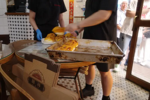 聽講祥興咖啡室既菠蘿油係最出名, 所以專程去到跑馬地試下係咪真係好食。因為係名店既關係, 假期下午3點幾黎到都要等大約15-20分鐘, 唔算等太耐。入到去, 都唔洗點睇餐牌, 即刻點左菠蘿油, 蛋撻, 奶茶, 同埋佢另一個好多人推介既肥豬餐肉煎蛋菠蘿包。首先,講吓佢嘅菠蘿油,真係做得好出色,係新鮮焗出嚟嘅菠蘿包,面頭個菠蘿皮甜度適中,而且個包好軟但唔會太霖。不過講到最好食,佢個餐肉煎蛋菠蘿包真係必點,午餐肉好厚同埋煎得好香,配埋個煎蛋真係一絕。