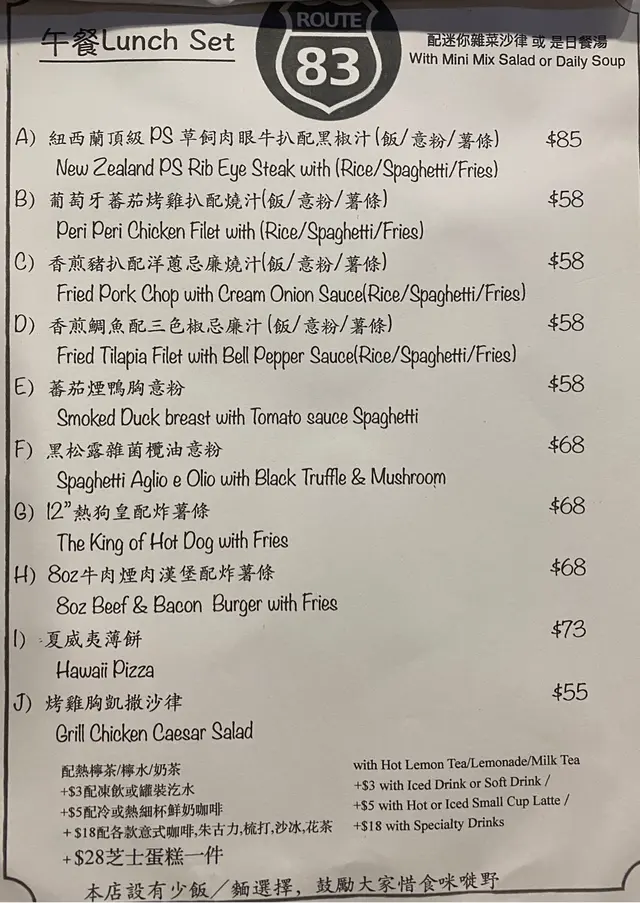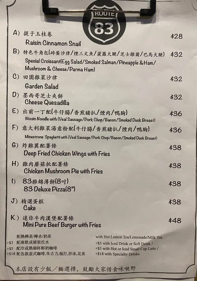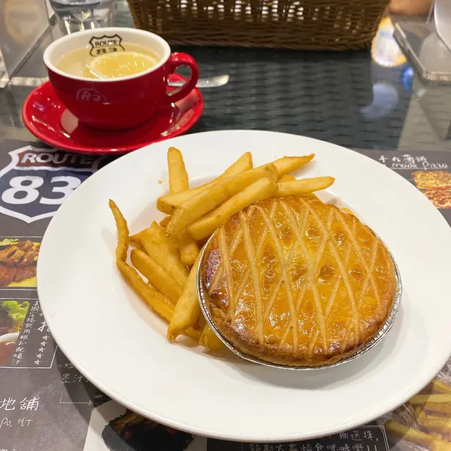 每次放假都會瞓到好晏先起身(˶‾᷄ ⁻̫ ‾᷅˵) 起身想食嘢但又唔想食太多驚過幾個鐘食唔落晚餐所以就去食個下午茶🤪經過見到Route 83有個餐牌嘅嘢食係份量比較少但又平就入咗去食啦😝• • • • •🧚🏻♀️雞肉蘑菇批配薯條🧚 [$38]見間鋪都幾多人本身都以為要等一陣先有嘢食,但落咗單之後大概等咗5分鐘就有得食,比我想像中快好多😳雞肉蘑菇批表面係微微金黃色,仲有啲格紋🥧一切開就見到佢熱到出哂煙🌫食落中間都有唔少蘑菇粒🍄同雞肉粒🐥薯條炸到外脆內軟🍟本身已經有調味所以就算唔加茄汁都好夠味😋• • • • •總括嚟講質素都唔錯,仲見到隔離枱叫嘅午餐份量都好大🤣最後埋單發現原來$38已經係包嘢食&餐飲,連加一都唔洗,都幾抵食😉• • • • •📝餐牌:…查看更多