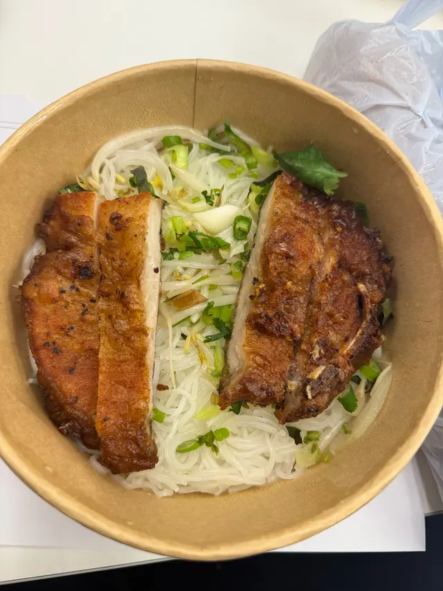 俊軒越南餐廳,中環嘅越南菜,見平時午餐外賣自取有85折,味道都算正正常常,有埋野飲一餐60幾蚊,都幫襯過幾次。今次就叫左個香茅豬扒湯檬,但係勢估唔到個豬扒咁有驚喜,中間零零舍舍抽起左兩舊豬扒,靠中間嗰兩舊豬扒長度唔一致肯定合唔埋,加上平時有幫襯開所以知道正常份量唔係咁少,就係唔知道到底係餐廳縮減成本定係後廚自己食,今次好失望,唔會再幫襯了。俊軒越南餐廳 (中環)中環永吉街36號永吉利商業大廈地下E號舖…查看更多
