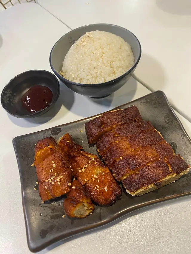 今日同呀仔喺葵興試咗《入素》,第一次食呢類型既齋,點知幾樣都好有水準,完全顛覆對素食嘅印象。🍗 海南雞飯素版嘅「雞」質地出奇地滑,唔會散晒,黃薑飯好香,配埋姜蓉一齊食好入味,完全唔覺係素。🐖 乳豬叉燒飯呢個真係驚喜位!「乳豬」有少少脆邊感,叉燒甜香又唔會太膩,整體味道好似真肉但又唔會假到好膠,份量都足。🥣 素湯必推!非常清甜有層次,唔係味精湯,飲落暖胃又舒服。🍢 串燒雞 / 串燒牛兩款都好有口感,唔乾唔硬,燒得啱啱好,加埋個沙嗲醬汁好好味,好似食緊泰國野咁。🥥 椰汁糕超正!椰香濃、軟滑、甜度啱啱好,係會食完想再叫多件嗰種。💬 總結味道有水準,完全唔覺係素食店;價錢合理,上菜都快。小朋友話好好食,仲話完全唔似食緊素食呀,喺葵興想食得清啲又保持滿足感,《入素》真係值得一試。#素食 #香港素食 #香港素食餐廳 #vegetarianhk #香港美食 #葵興探店 #香港旅游攻略 #香港 #香港生活 #小红書爆款美食 #我的美食日記 #美食日常 #美食探店 #香港打卡#探店 #打卡 #香港美食推薦…查看更多